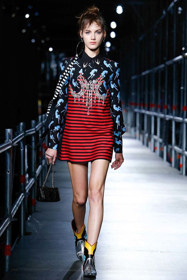 For further reference, here are similar dresses (but blinged out versions) walking down the Resort 2016 runway: