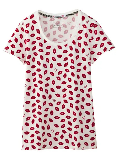 A little backstory: I have always loved lip/lipstick prints, and the original t-shirt that instigated me to love the pattern is this Lulu Guinness for Uniqlo t-shirt that was released in 2012: