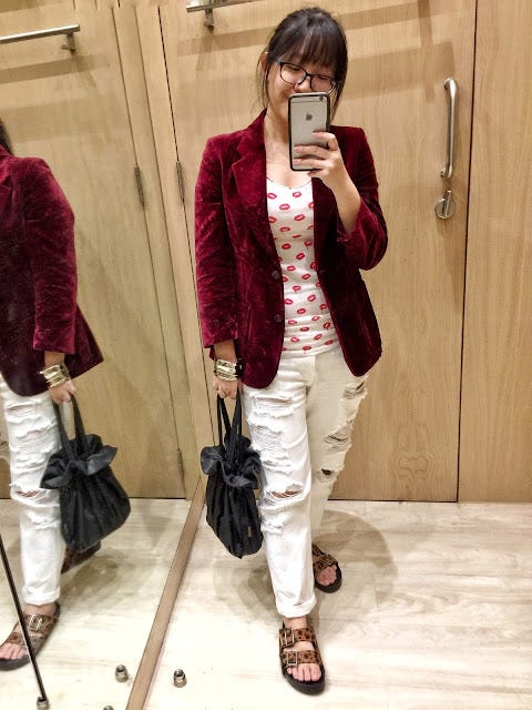 One of my earliest piece featuring this iconic design was a Zara t-shirt I thrifted years ago. I wore it to death even though it was a size too small for me then. I no longer have a photo of the shirt itself, but here are photos of me from the past in it: